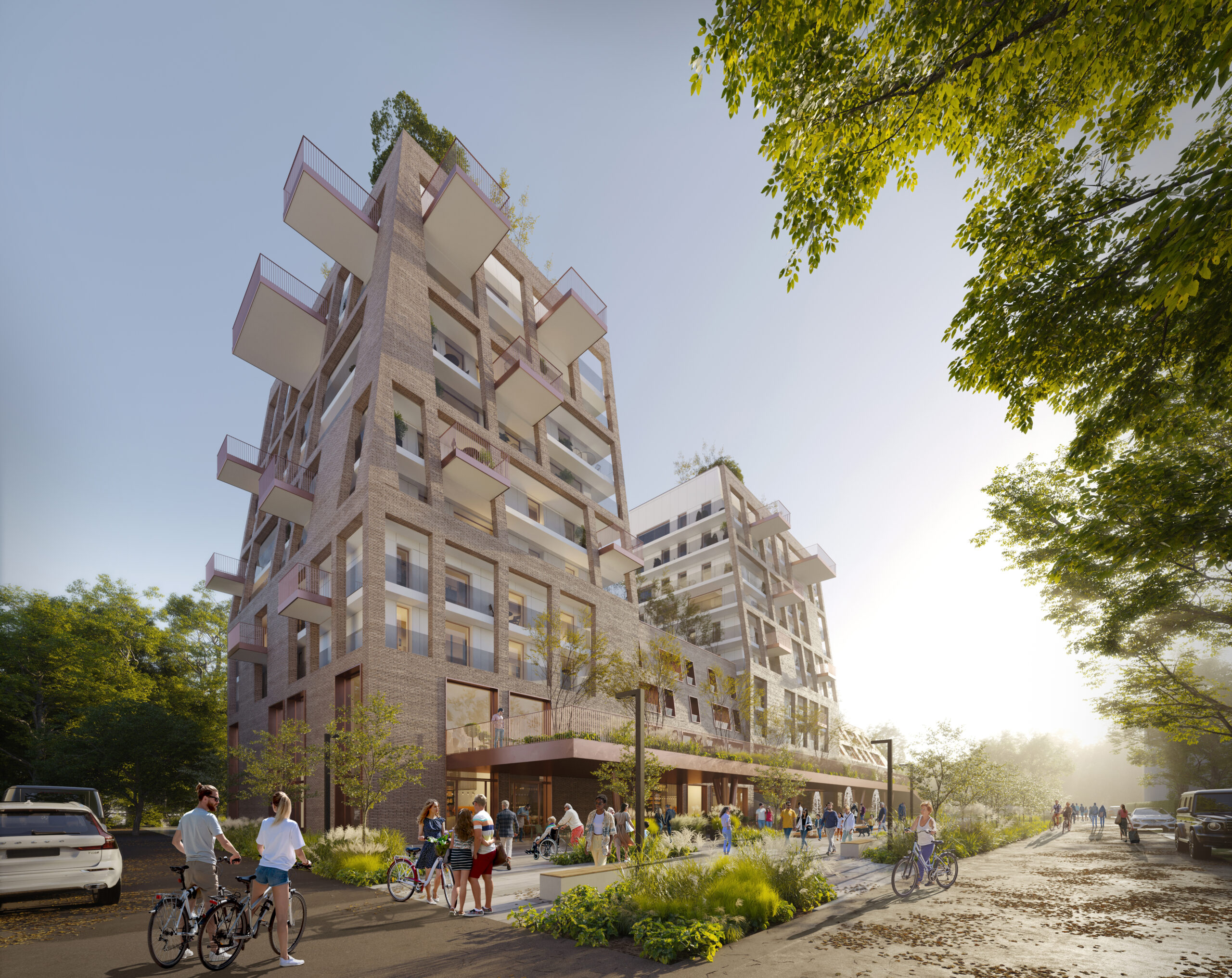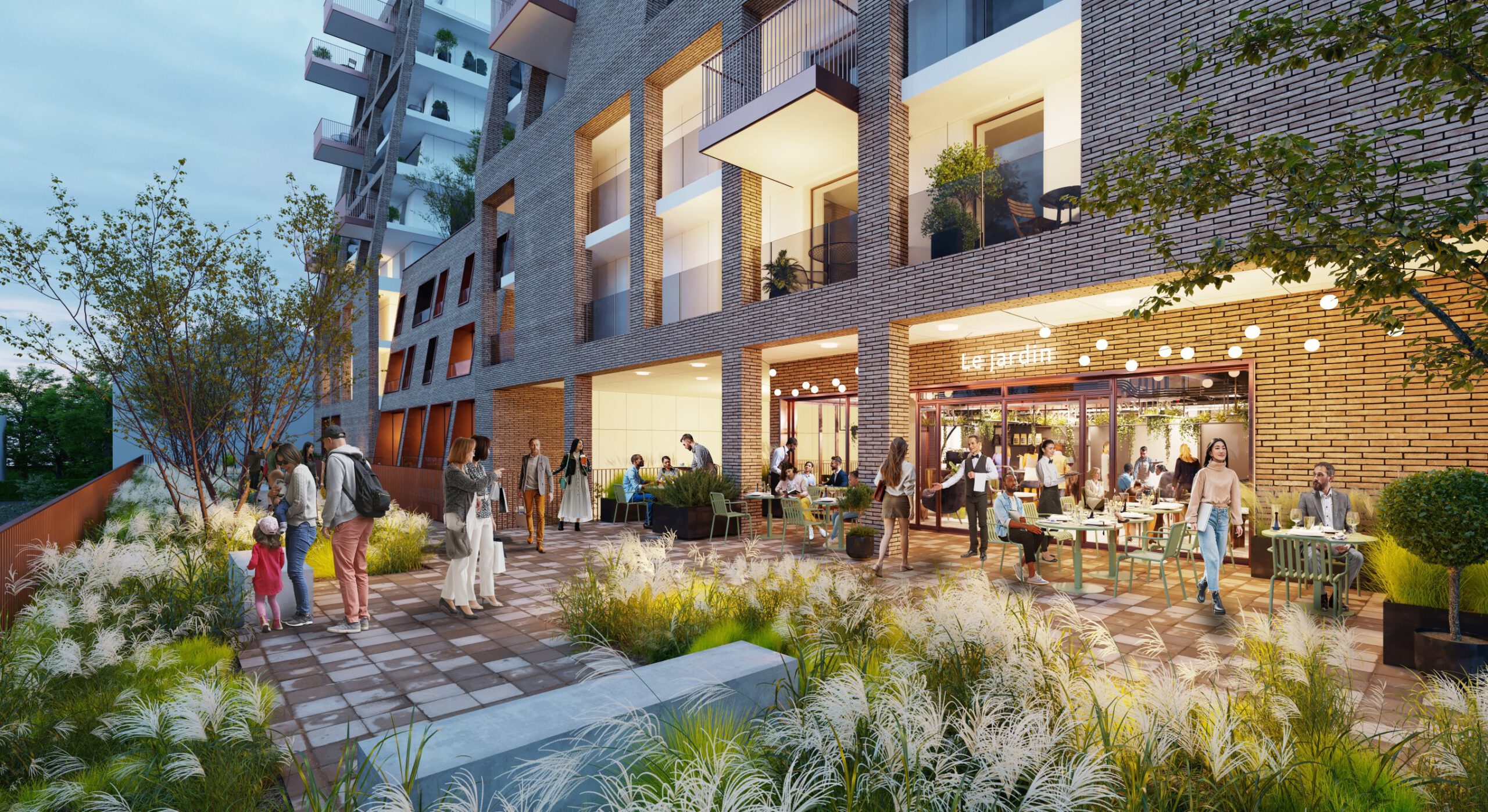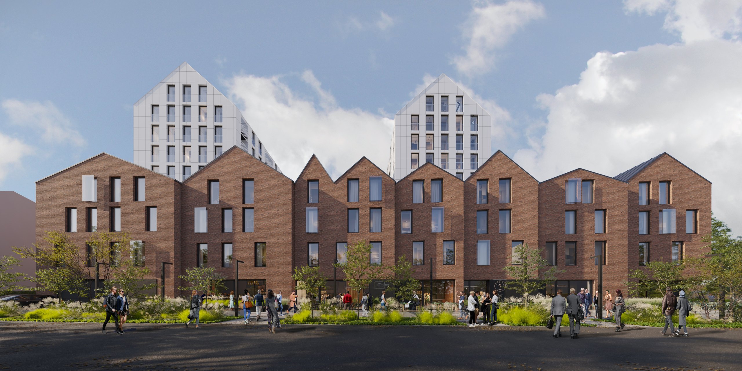 Projektowana koncepcja wyraźnie nawiązuje do charakteru kamieniczek. Bryła 4-kondygnacyjna podzielona jest na fragmenty dzięki czemu w skali człowieka ma miejski charakter. Bryły 10-cio kondygnacyjne są wycofane przez co nie wydają się duże z poziomu ulicy.