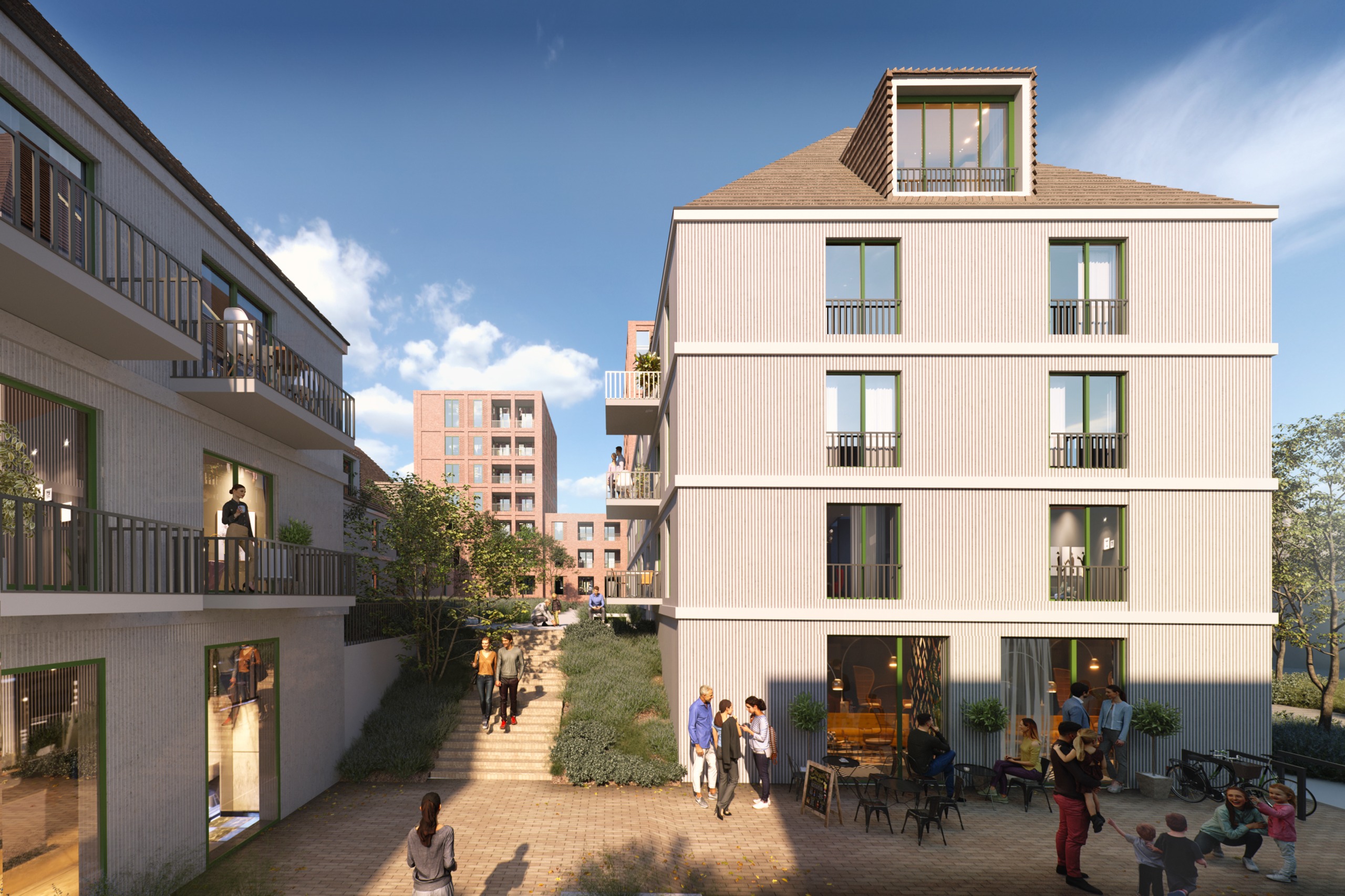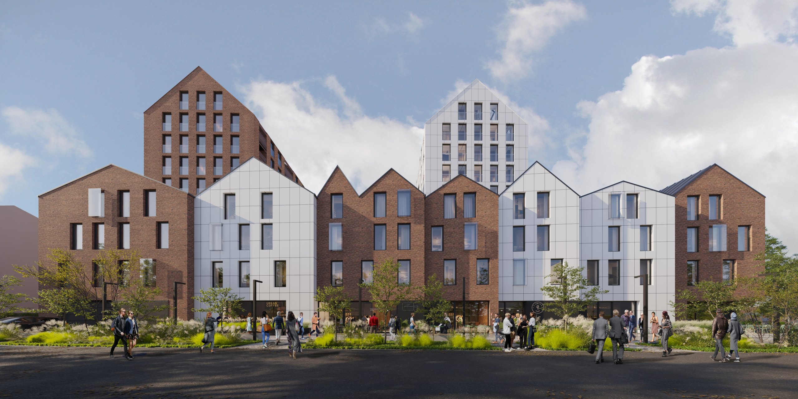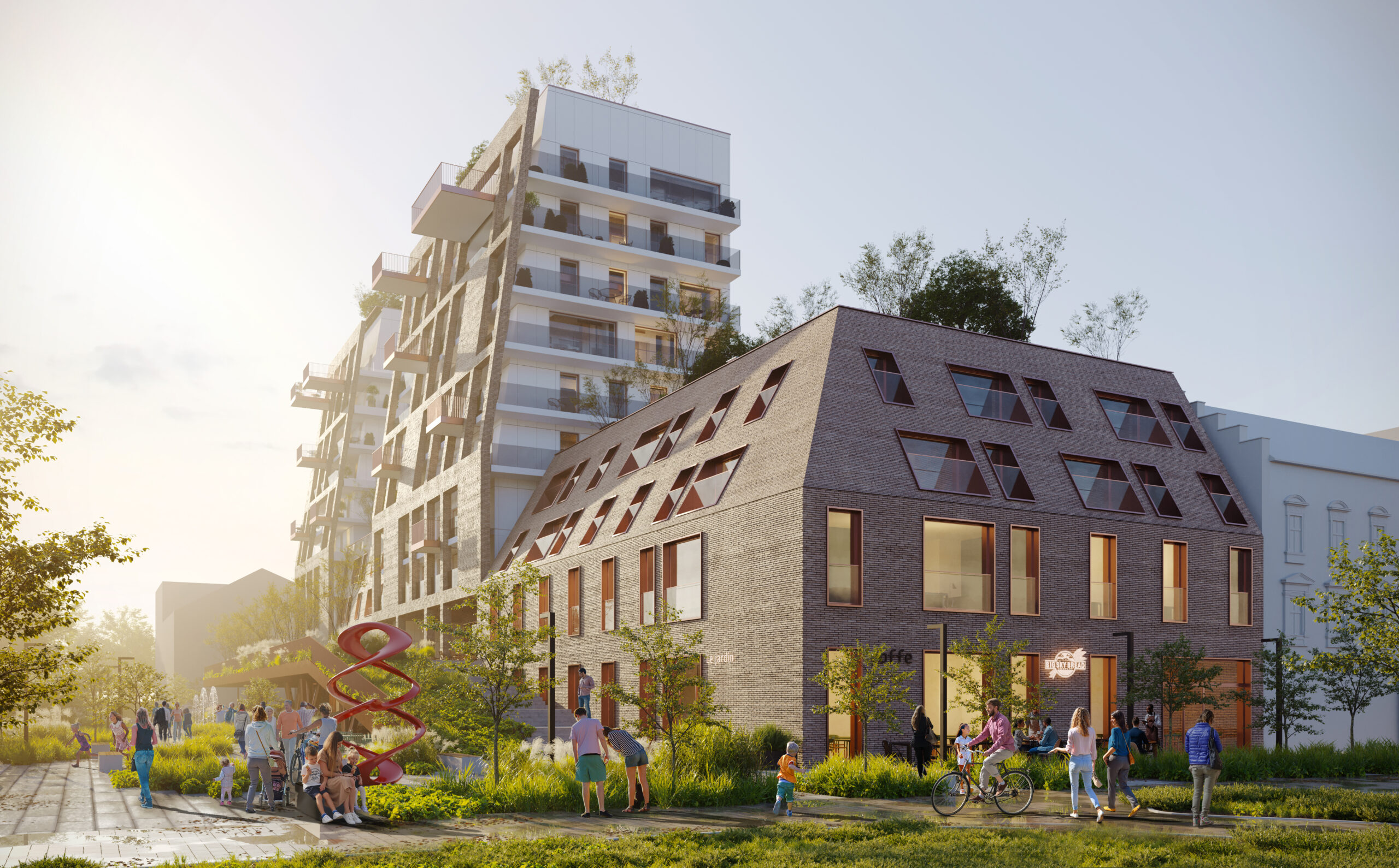 Koncepcja oparta jest na klasycznym podjęciu do zabudowy kamicowej. Zaproponowano budynki wielorodzinne z usługami i biurami przekryte dachami spadzistymi nawiązującymi do najbliższej okolicy. Koncepcja składa się z dwóch elementów podkreślonych bryłą oraz materiałem.