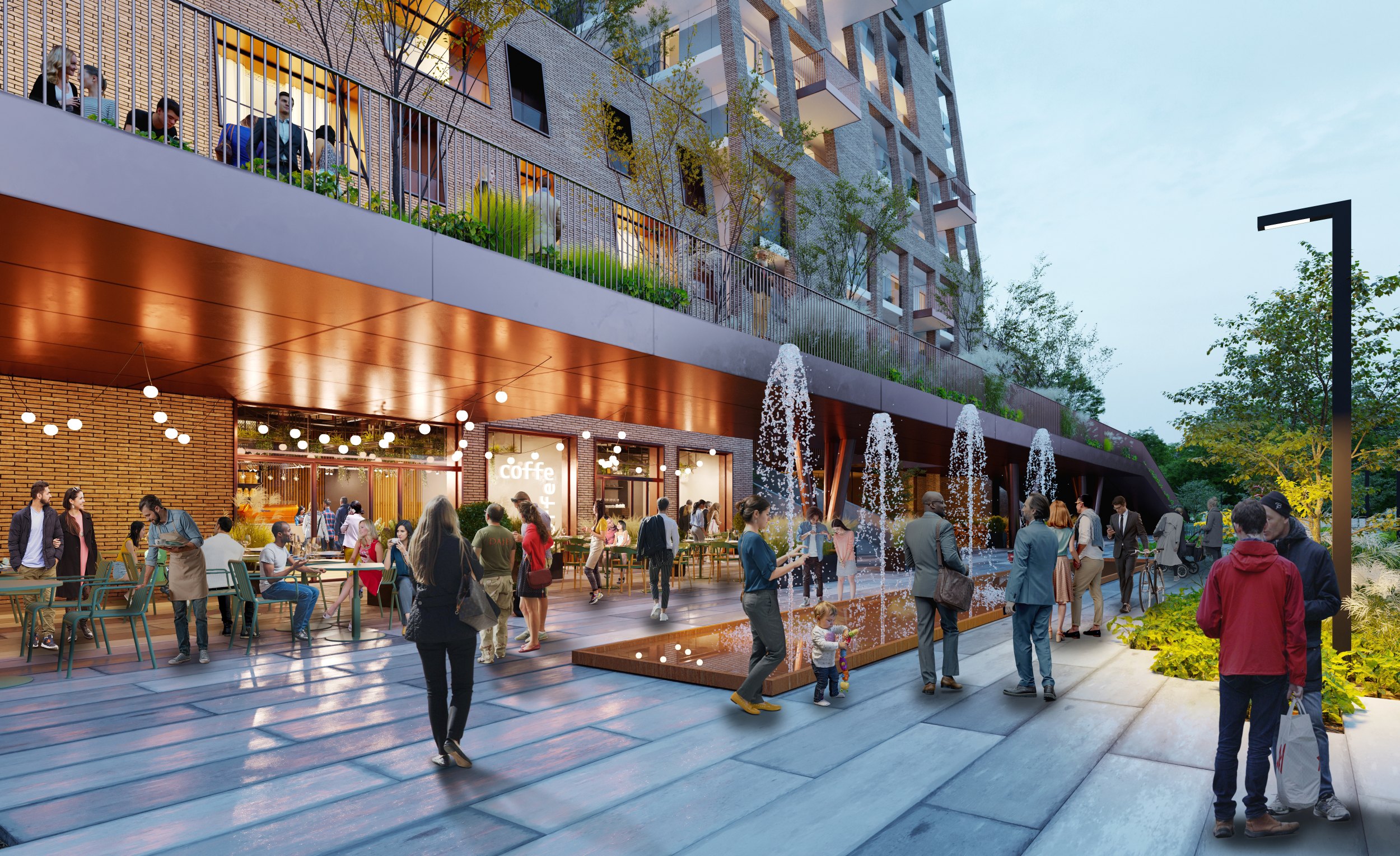 Koncepcja ta ma za zadanie wpisanie się w otoczenie tak aby nie zakłócając charakteru miejsca wprowadzić nową zabudowę, uatrakcyjniając tą część miasta poprzez stworzenie dodatkowego placu publicznego, z kawiarniami i różnymi usługami.